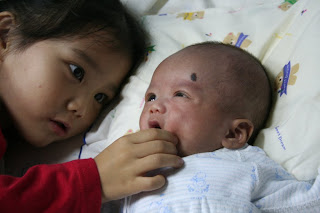 她也會幫忙照顧弟弟長大 (弟弟哭的時候塞奶嘴...XD)